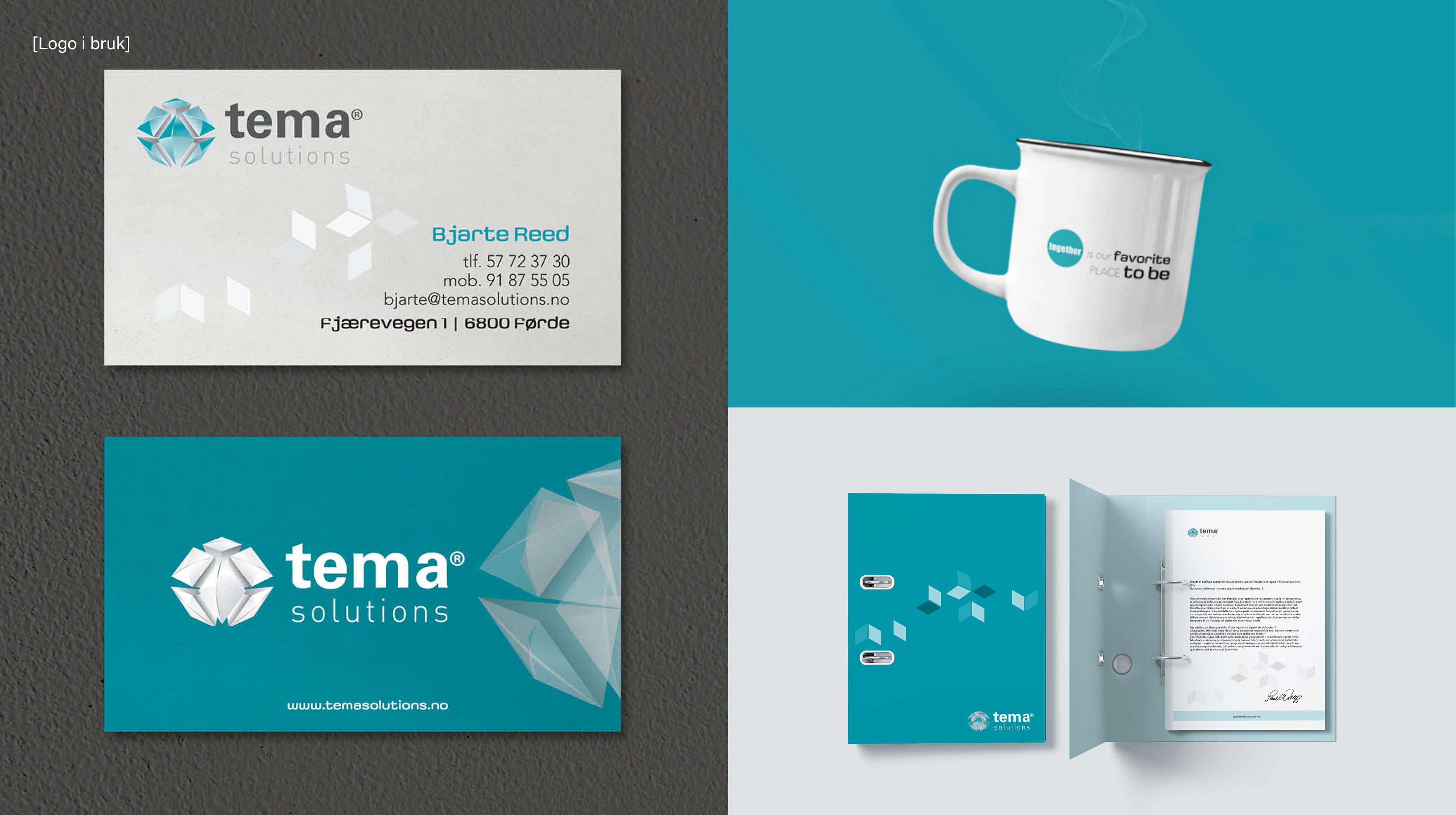 PROSJEKT] Jeg var ansvarlig for å utvikle en ny designidentitet for Tema Solutions, som inkluderte en ny logo, en grafisk profilmanual og en omfattende designoppdatering både innvendig og utvendig på det nye kontoret. Jeg hadde også ansvaret for å følge opp produksjonen med ulike leverandører, som inkluderte å sikre at logoen ble brodert på klær og teste og velge riktig folie til bildekor. Mitt hovedansvar var å sikre at alt var klart til den planlagte gjenåpningen av Tema Solutions. Tema Solutions er en stor bedrift som består av flere underbedrifter, og vår ide er å tilby skreddersydde og unike løsninger til hver enkelt kunde. Logoens element er basert på en 12-sidet kube, kjent som en Dodecahedron, som symboliserer kompleksitet. Denne figuren består av flere deler som passer sammen som et puslespill og representerer vår evne til å løse kundens problemer.